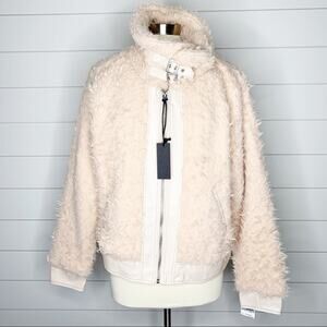 BLANKNYC Curly Faux Shearling Full Zip Teddy Buckle Jacket Cream Size XXL