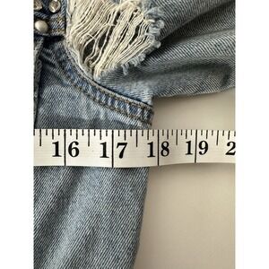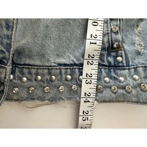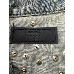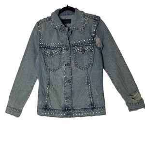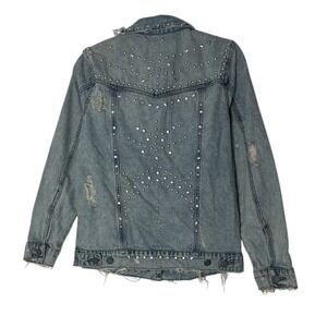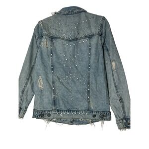 BLANKNYC Denim Jacket Womens XS Blue Studded Pearl Distressed Star Oversized