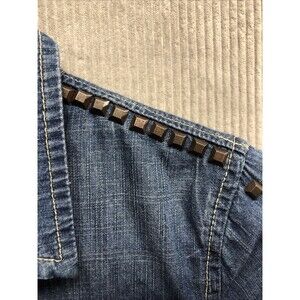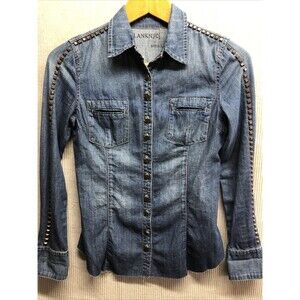 BLANKNYC Denim Shirt Size Small Studded Embellished Raw Cut Hem