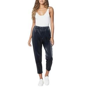 BLANKNYC Elastic Waist Vegan Faux Leather Trousers Joggers Pants SZ M Dark Gray