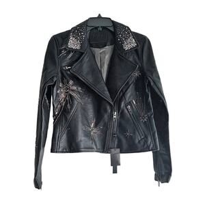 BLANKNYC Embellished Faux Leather Moto Jacket NEW