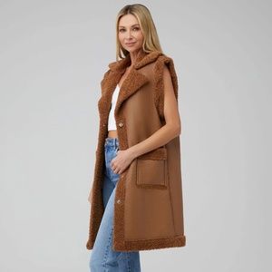 BLANKNYC Faux Leather & Faux Shearling Long Vest in Touch And Go