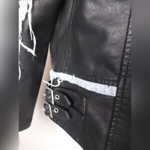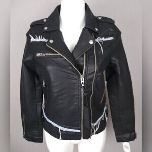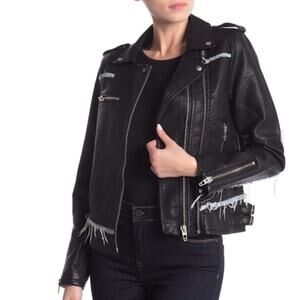 BLANKNYC Faux Leather Fray Denim Trim Moto Jacket