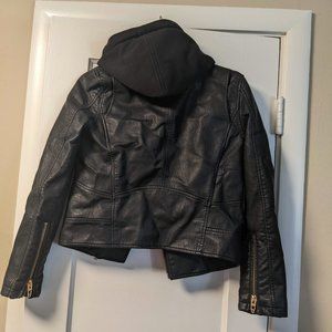 BLANKNYC Faux Leather Hooded Crop Moto Jacket -- Black & Gold