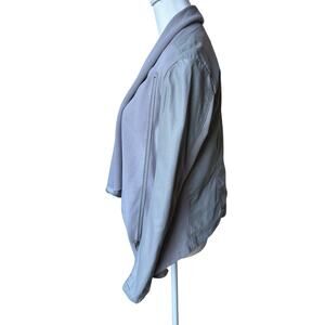 - Stylish draped faux leather Trimmed moto jacket in a soft gray tone