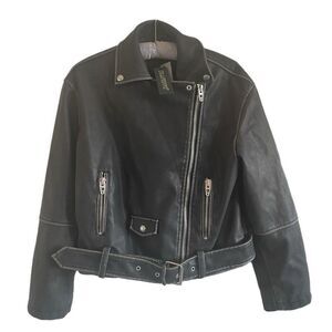 BLANKNYC Faux Leather Belted Moto Jacket