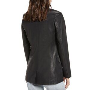 BLANKNYC Long Faux Leather Double Breasted Blazer