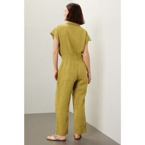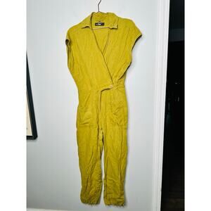 BLANKNYC Moss Green 100% Linen Cap Sleeve Collared Front Button Jumpsuit Size S