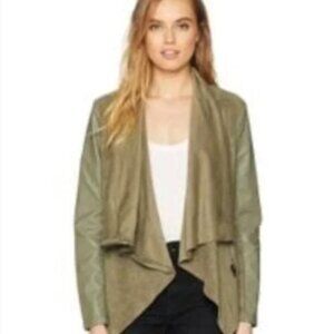 BLANKNYC Olive Green Vegan Leather Suede Drape Moto Jacket Sz S