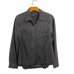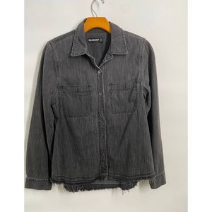 BLANKNYC Shirt Black Button Down Long Sleeve Fringe Hem Casual Medium