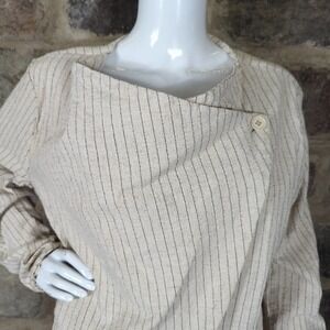 Unstructured Blazer Beige/ Tan with Black Pinstripe Draped