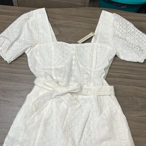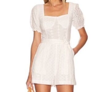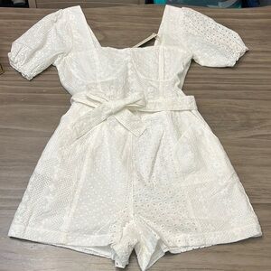 BLANKNYC WHITE EYELET PUFF SLEEVE ROMPER LARGE