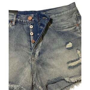 BLANKNYC WOMENS DISTRESSED BUTTON FLY JEAN SHORTS