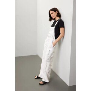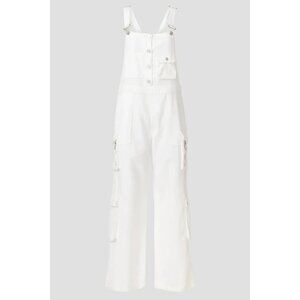 These relaxed-fit white overalls blend functionality with style, featuring cargo-style utility pockets and adjustable straps for a customizable fit. Made from soft, breathable cotton, these overalls are an ideal choice for anyone seeking a balance of comfort and practicality in their wardrobe. Their versatile design allows for effortless pairing with casual tops.