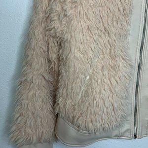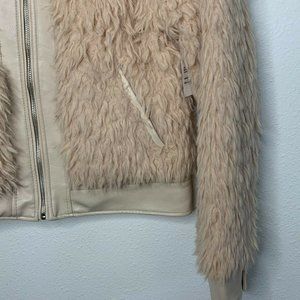 BLANKNYC Women's Curly Faux Shearling Full Zip Stand Collar Jacket Long sleeve S
