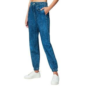 BLANKNYC Womens S Blue Dark Wash High Rise Easy Come Easy Go Tapered Leg Jogger Casual Relaxed lounge Everyday