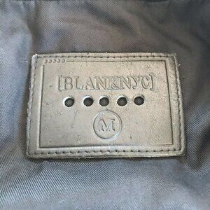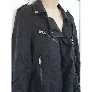 BLANKNYC Women's Sz M Black Tencel Moto Jacket Side Zip Belt Roll Tab Sleeves