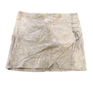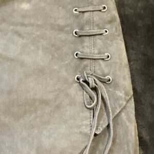 BLANKNYC-Suede Leather Lined Mini Skirt-Lace Up Faux Wrap-Smoky Gray-Size 30