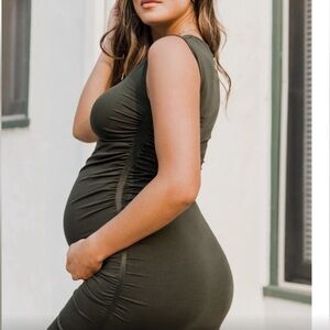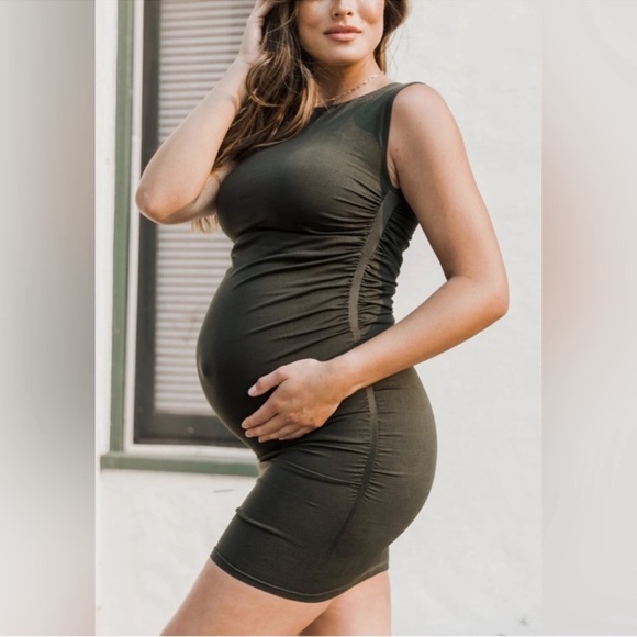 BLANQI Dark Green Square Neck Comfort Support Mini Maternity Dress (M/L)