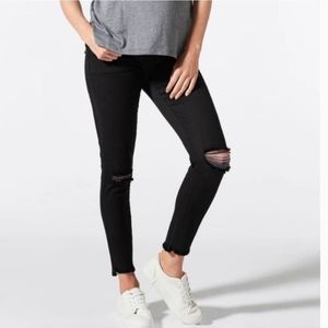 BLANQI Denim Maternity Belly Support Skinny Jeans Black Knee Slit 10