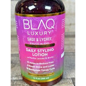 BLAQ LUXURY Sage & Lychee Daily Styling Lotion Organic Organic NEW 12 FL. OZ. Brand new. Detail pictures are attached. Sold as is as pictured in the listing. -Shipping & Handling-