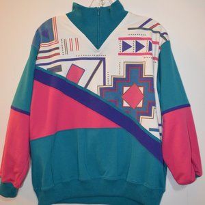 BLAST(R) Petites 1/4 Neck Zip Colorful Geometric Shapes Prints Sweater M/M