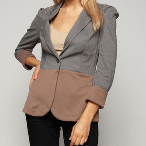 CHARCOAL BEIGE BOASTING SLEEVES ONE BUTTON BLAZER