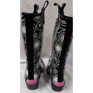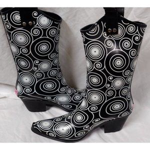 BLAZIN ROXX Layla Sz 7 Rain Boots Black White Geometric Circles Outdoor Garden Chore Cowgirl Boot 58106