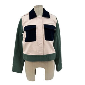 BLDWN Beck Jacket in Gloss Pink Colorblock Green Navy Blue Cropped Size Small