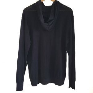 BLDWN Mens Luis Linen Blend Knit Hoodie Sweater Kangaroo Pocket Black Large