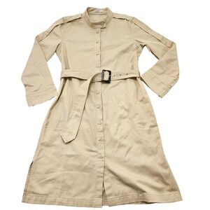 BLDWN Sz M Button Up Tie Waist Collared Morris Trench Coat Dress in Studio Beige