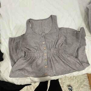EUC gray dress worn once. Flowy, empire waist, button down tank dress with functional buttons and invisible side pockets. Questions? Leave a comment below!
