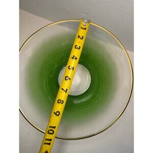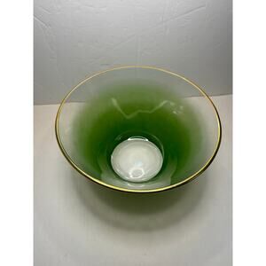 BLENDO Large Green Glass Punch Salad Serving Bowl Gold Rim