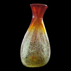 BLENKO GLASS VASE AMBERINA CRACKLE 4 SIDED PINCHED #533 MID CENTURY Tangerine