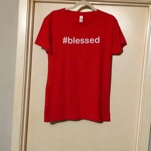 Hash Tag, Blessed Red Scoop Neck , Short Sleeve Tee, 20.5 arm pit to pit, 27.5 Long! New Without Tag.