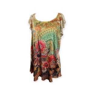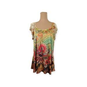B.L.E.U FLORAL Studded Sleeveless Blouse XL flutter sleeve scoop neck