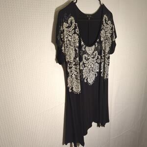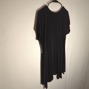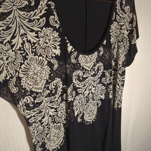BLEU Medium Black White Floral Print Asymmetrical Hem Stretch Top Made in USA