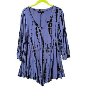 B-L-E-U Royal Blue Tie-Dye V-Neck Tunic Top 2X