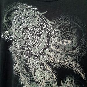 Features sublimated front design with studded embellishments, three-quarter length sleeves, and lace on upper back.