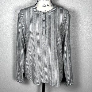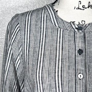 B.L.E.U. Women's Sz M Linen Blend Peasant Boho Relaxed Lagenlook Blouse Grey