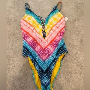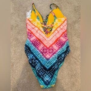 BLEU by Rod Beattie Good Vibrations Lattice Mio One-Piece Swimsuit Color Size 14