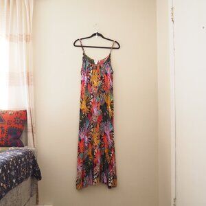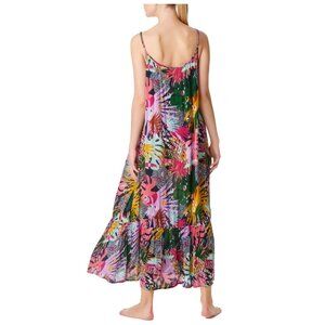 BLEU by Rod Beattie Lets Get Loud Floral Print Cover-Up Spaghetti Strap Maxi Dress sz M