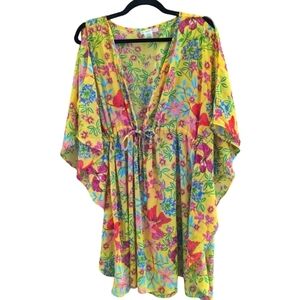 BLEU by Rod Beattie Multi-color Tropical Floral print kimono Size Large EUC