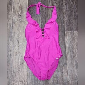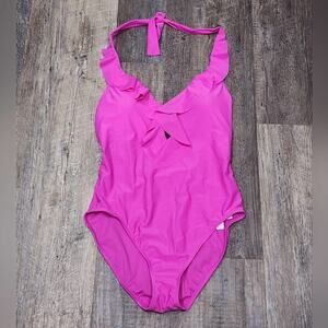 BLEU by Rod Beattie hot pink ruffle one piece bathing suit new!!