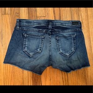 Low rise shorts with black on one side and blue denim on the other. Stretchy. Fits like a size 25 or 26.