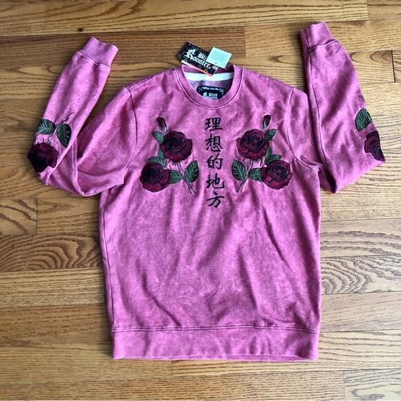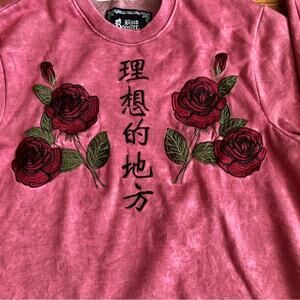 BLIND ROOSTER “Ideal Place” Asian Red Rose Embroidered Sweatshirt Men’s M NWT