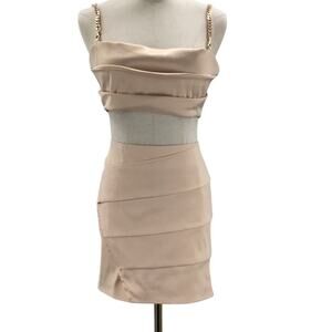 BLITHE SZ L Champagne Cream Sleeveless Chain Strap Pleated 2 Piece Set NWT B79