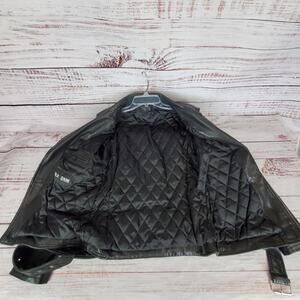 BLK DNM Black Leather Moto Biker Jacket Women's M Zip Bomber Coat Buckle Belted