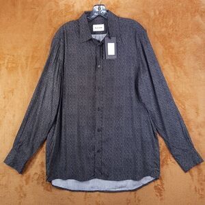 BLK DNM Shirt Mens Size 48 Black Mini Dot Casual Modern 70s Collar $230