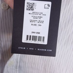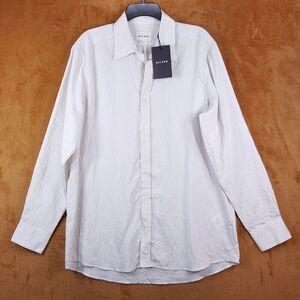 BLK DNM Shirt Mens Size 50 Large White Stripe Casual Modern 70s Collar $290